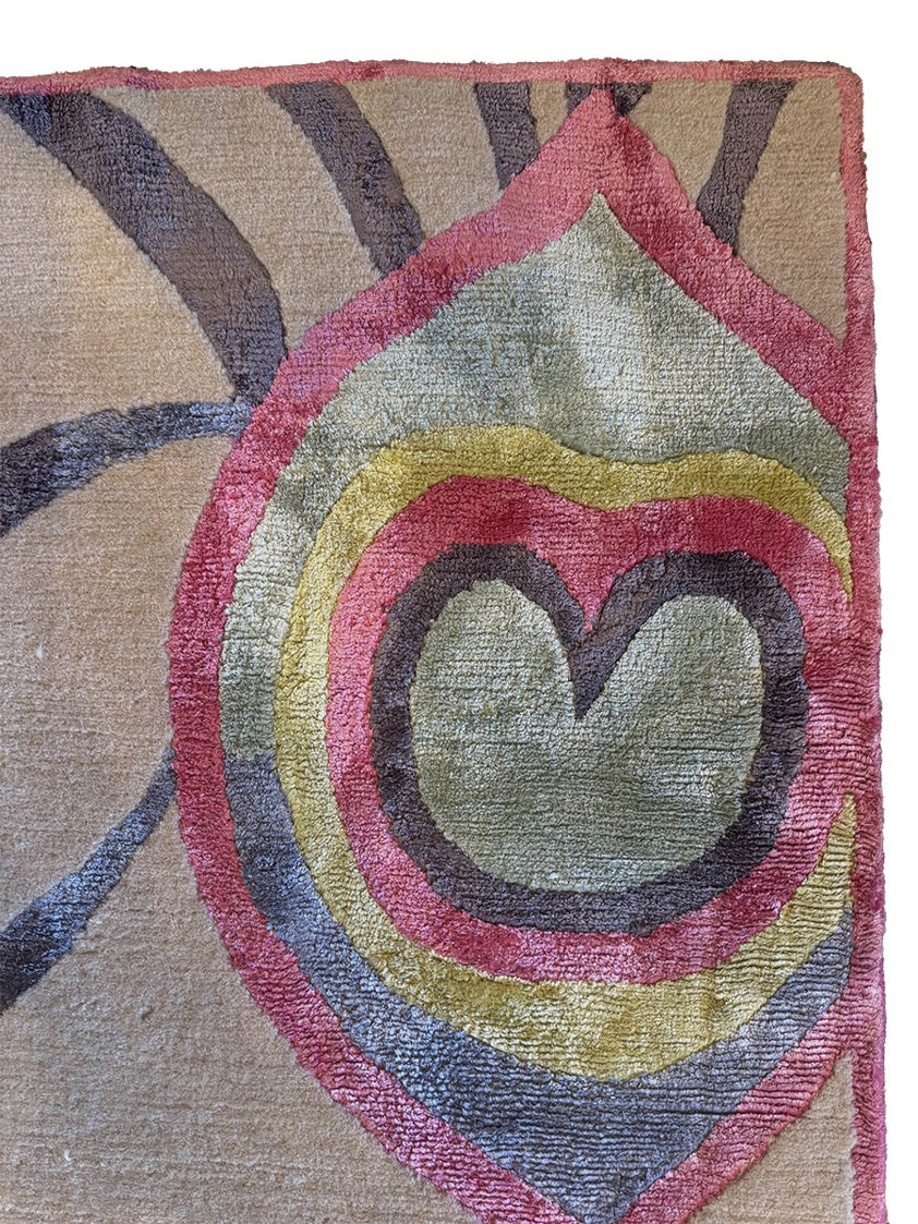 Crafted from a carefully balanced mix of wool and bamboo silk, this rug combines durability with a refined surface finish. Wool ensures a dense, comfortable pile and long-lasting performance, while bamboo silk adds a gentle shimmer that shifts with the light, especially within the coloured feather details. The rug is ideal for anchoring a seating area, introducing a statement piece into a neutral scheme or complementing contemporary furniture with a touch of playful pattern. Its palette and design lend themselves to living rooms, bedrooms or dressing areas where a sense of luxury and individuality is desired.